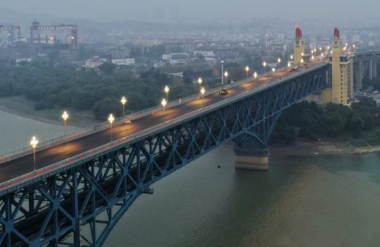 颜色皎洁、“含苞待放”的玉兰花灯,是南京长江大桥的标志性元素。21日傍晚,微薄雾气笼罩长江。夜幕中,南京长江大桥的白玉兰灯在大桥大...