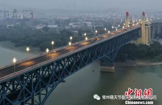 站在桥头上望去,数百枚玉兰灯凭栏而建,分列在桥梁两侧,整齐而壮观。夜幕下的长江大桥被暖暖的“星星之光”铺满。