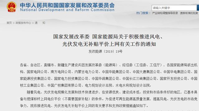 随着风电、光伏发电规模化发展和技术快速进步,在资源优良、建设成本低、投资和市场条件好的地区,已基本具备与燃煤标杆上网电价平价(不需要国家补贴)的条件。为促进可再生能源高质量发展,提高风电、光伏发电的市场竞争力,现将推进风电、光伏发电无补贴平价上网的有关要求和支持政策措施通知如下。