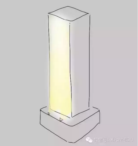 ▲在建筑物的下面放置投光灯,建筑物的立面亮起来的时候就会显出没亮的那一面,明暗交错,还原建筑物的光影立体感。(手绘:梁贺Lego)