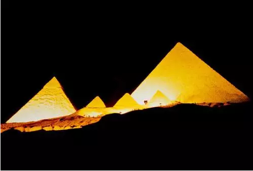 ▲埃及金字塔这种简单几何体的石材构筑物,从远距离实施泛光照明是最可行的手段。