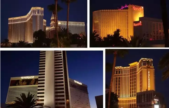 ▲拉斯维加斯城市夜景中大体量的泛光照明设计追求一种色调上的和谐性。