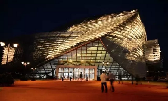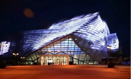 ▲夜幕降临,大连国际会议中心开始用另一种方式展现建筑之美,屋顶以星光为媒介,配合立面泛光照明,犹如一个即将化而为蝶的蚕蛹。