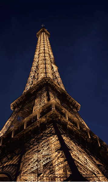 ▲埃菲尔铁塔的照明设计者针对其钢结构网架的特点,采用了在其塔身的各网架点设置照明灯具,利用泛光照明的方式将整个钢结构塔身照射得明亮透亮。