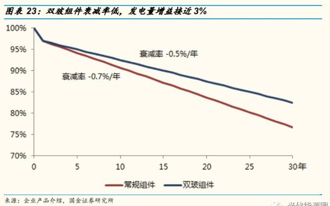 衰减低寿命长,发电量增幅超 20%